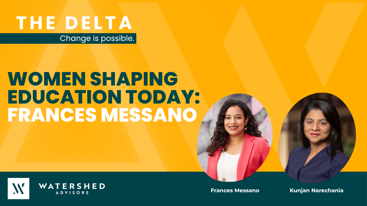 Reimagining the K–12 Model with Frances Messano The Delta Reimagining the K–12 Model with Frances Messano By watershedadv|2026-03-25T13:00:24-05:00March 24, 2026|The Delta|